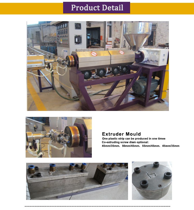 can be selected for co-extrusion.The line is used to produce flexible/rigid in one sealing strip for bathroom,