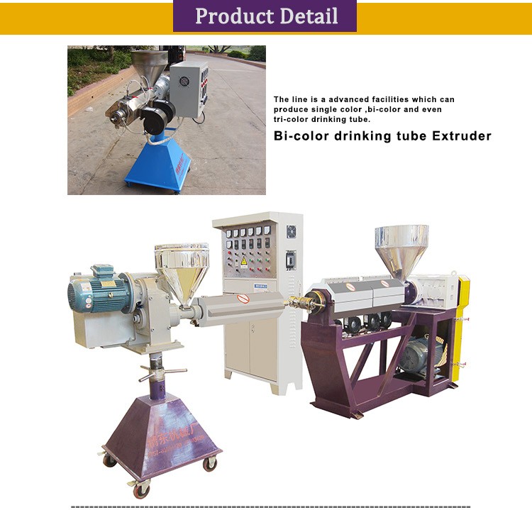 The line is a advanced facilities which can produce single color, bi-color and even tri-color drinking tube.