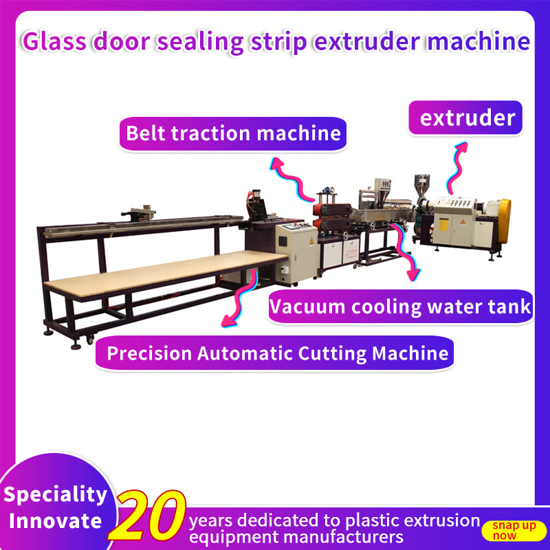 The line is used to produce flexible/rigid in one sealing strip for bathroom, windscreen wiper, wire trunk, collapsing tag etc.Glass door sealing strip extruder machine,Soft-coated
