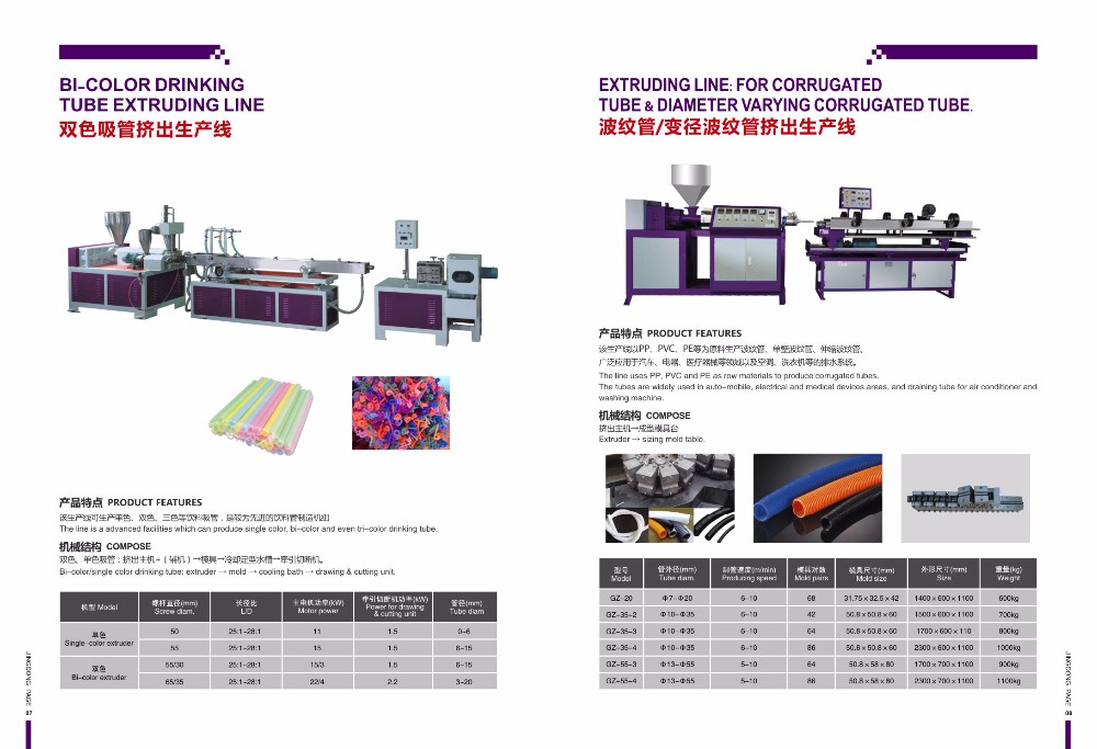 Based on decades of experiece, JINGDONG MACHINERY continuously renews its technology accordingly, and builds simple but reliable plastic extruding facilities. With the extruding facilities from JINGDONG MACHINERY one can produce best products such as plastic sealing strip ( twig ), plastic rattan, electric wire & cable, plastic pipe & profile, plastic compound, etc. Recently the JINGDONG developed a new series of extruder for corrugated tube. They are well welcome by the market.